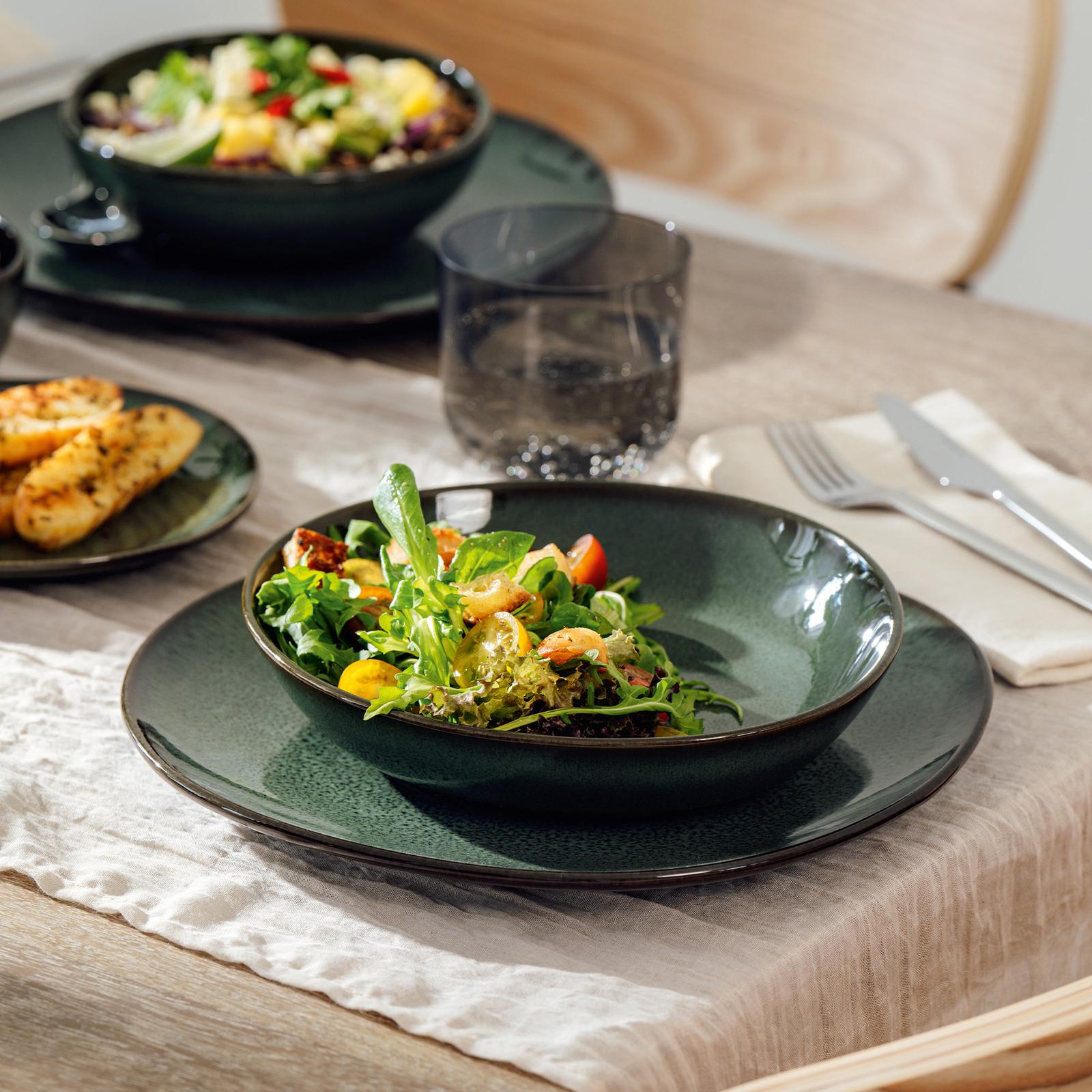 Pottery takes on a modern makeover with the Lave Collection by Villeroy & Boch. During manufacturing the hand applied glaze takes on different tones and textures. Each piece is a unique work of art. The generously proportioned pieces are slightly asymmetrical, adding to the craftsman appeal. Villeroy & Boch has been creating sophisticated tableware since 1748.
