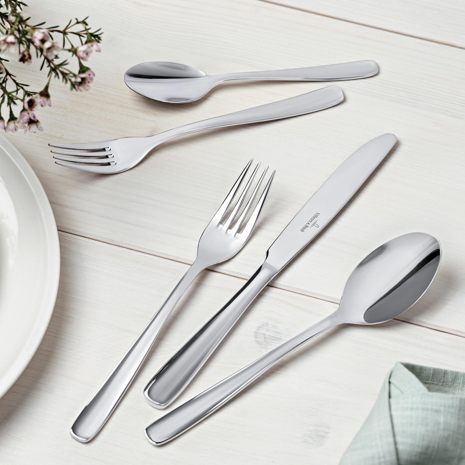 The Liam Flatware set is made of stainless Steel for durability and rust resistance. The sleek lines of this pettern bring a modern sensibilty to your table but can be mixed with classic styles too.