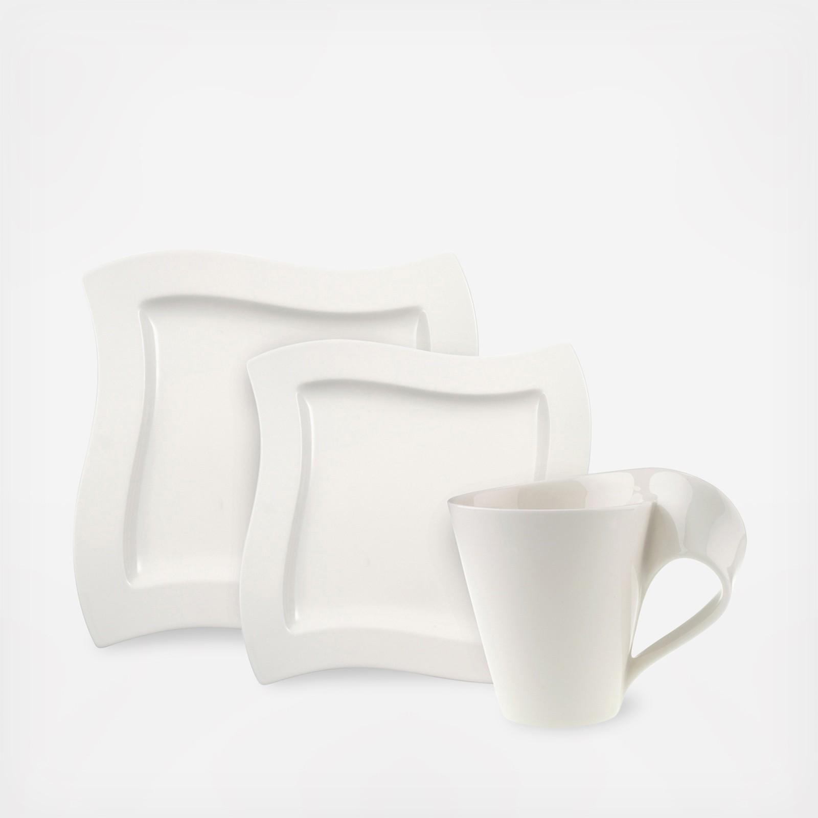 Distinguished by angular shapes in a fluid wave design, the New Wave collection accents the simplicity of white dinnerware with the movement created by the contemporary lines.