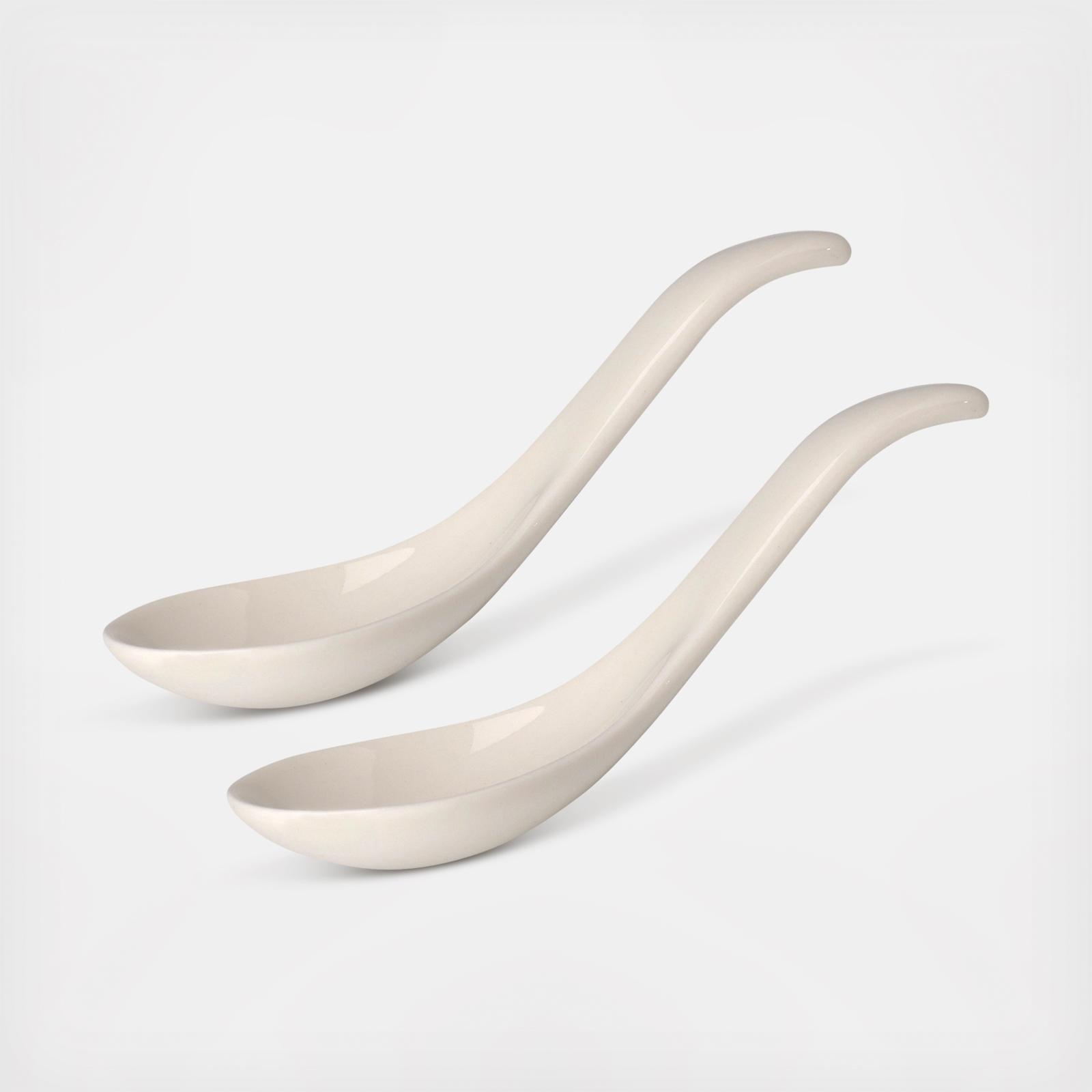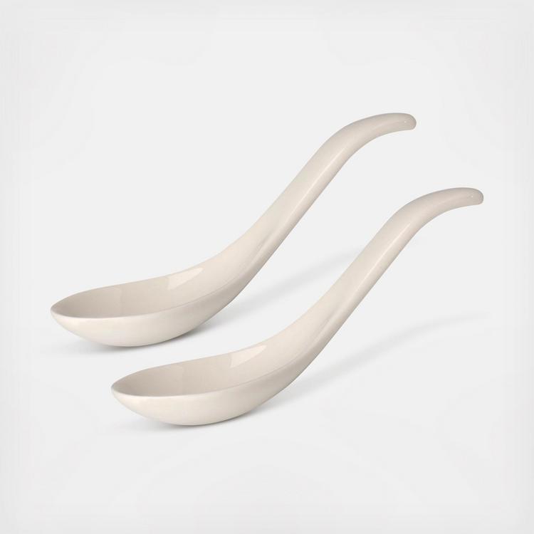 Enjoy your favorite soups, stews, chili and more with this well thought out collections of bowls and serving pieces. Set of 2 Asian-inspired spoons are made of high-quality German-made porcelain that provides upscale appeal and lasting durability. This is proudly manufactured in our German factory. Dishwasher and Microwave safe.