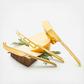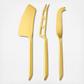 Slice and savor the likes of smoked gouda, Roquefort and Emmental with a sophisticated set of three mirror-plated gold cheese knives. Set features a small cleaver for hard cheeses, a perforated blade for soft cheese and a fork-tipped spear knife for breaking apart crumbly cheese.