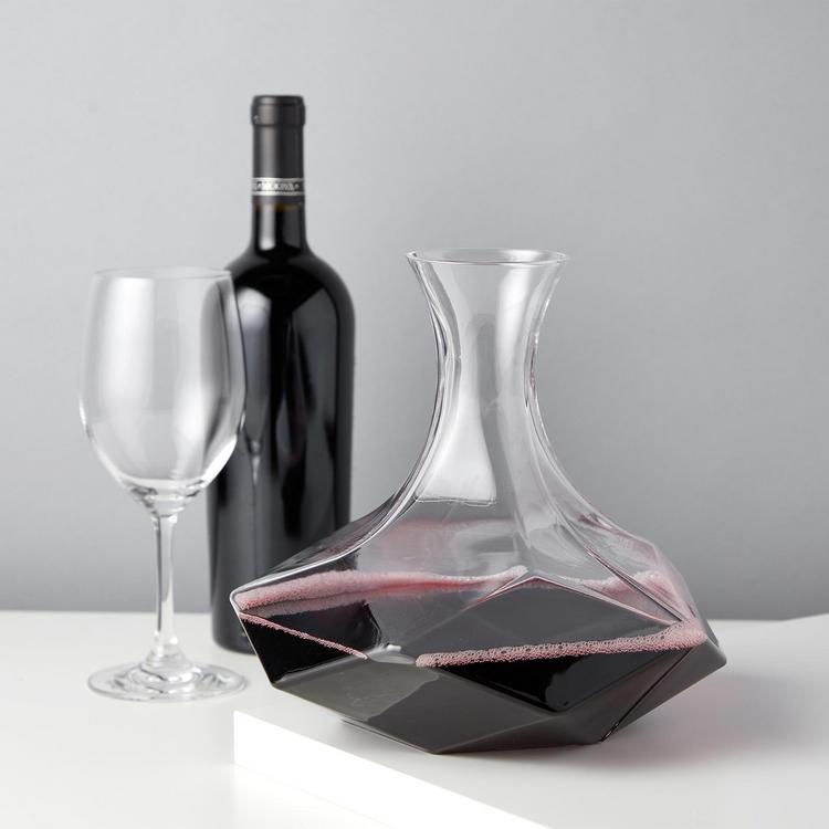 Splitting off from a star-shaped base, ten trigonal sides make our polyfaceted crystal decanter uncommonly captivating. With each face sending prismatic light in splintered rays through your liquor, the shape itself rounds out smoothly as it reaches the neck of the vessel for an even, steady pour.