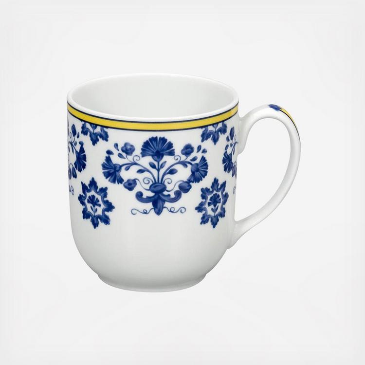 Inspired by the distinctive style of embroidery from the eponymous town in central Portugal, the bright yellow and blue of the Castelo Branco collection is a light, fresh take on a color palette that is so emblematic of the European Mediterranean. Since 1824 Vista Alegre has been the oldest producer of porcelain in Portugal, earning the title of Royal Factory in 1829. Throughout history the company has continued to produce porcelain for royalty the world over, from Ferdinand II of Portugal to Queen Beatrix of the Netherlands. Today the company preserves tradition while continuing to produce innovative designs by collaborating with world famous designers such as Christian Lacroix and Oscar de la Renta.