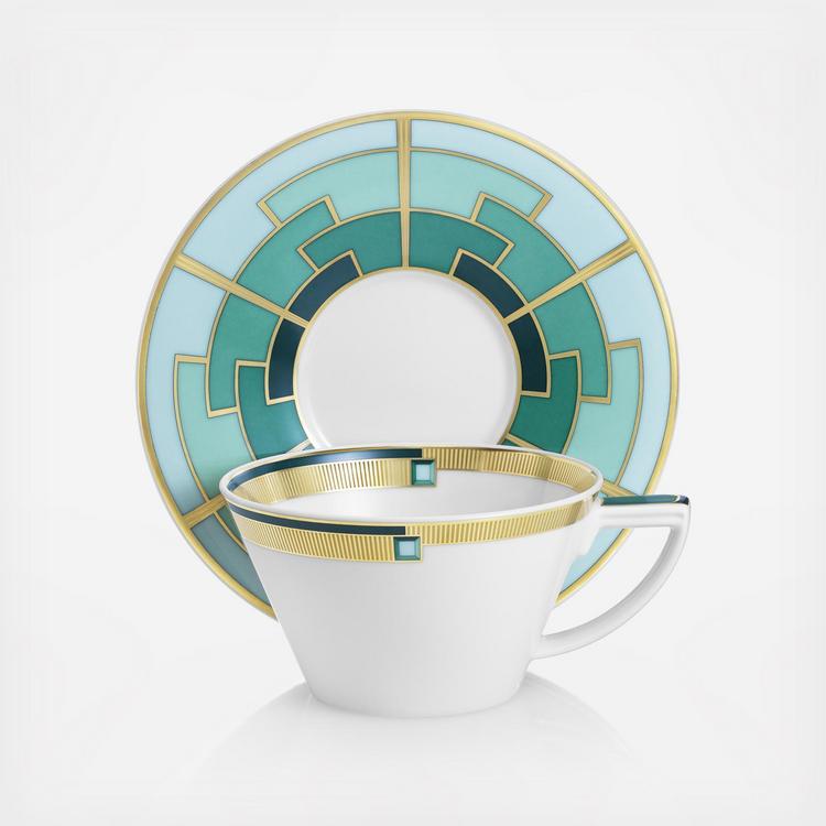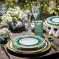 The Vista Alegre Emerald collection, with its gold accents, geometric lines, and nuances of ancient Egyptian art embraces the modern opulence of the Art Deco movement. Since 1824 Vista Alegre has been the oldest producer of porcelain in Portugal, earning the title of Royal Factory in 1829. Throughout history the company has continued to produce porcelain for royalty the world over, from Ferdinand II of Portugal to Queen Beatrix of the Netherlands. Today the company preserves tradition while continuing to produce innovative designs by collaborating with world famous designers such as Christian Lacroix and Oscar de la Renta.