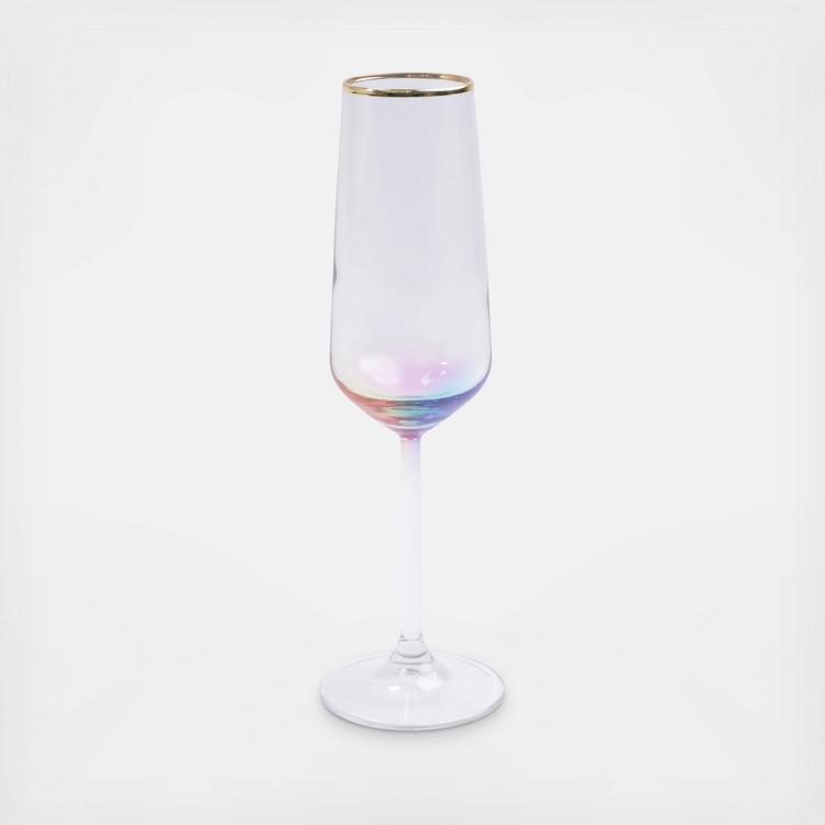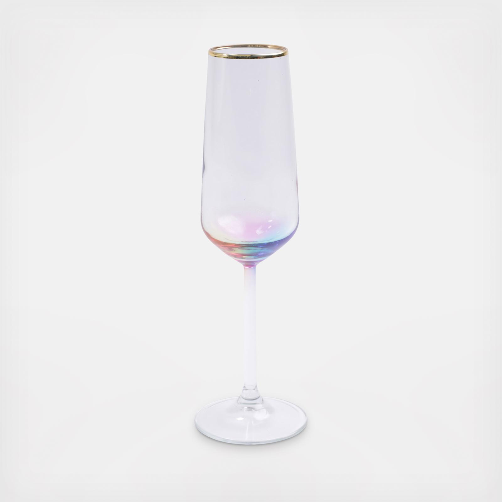 Add sparkle to any setting with a gilded gold rim and varied colored glass that refracts light on the Rainbow Champagne Flute.