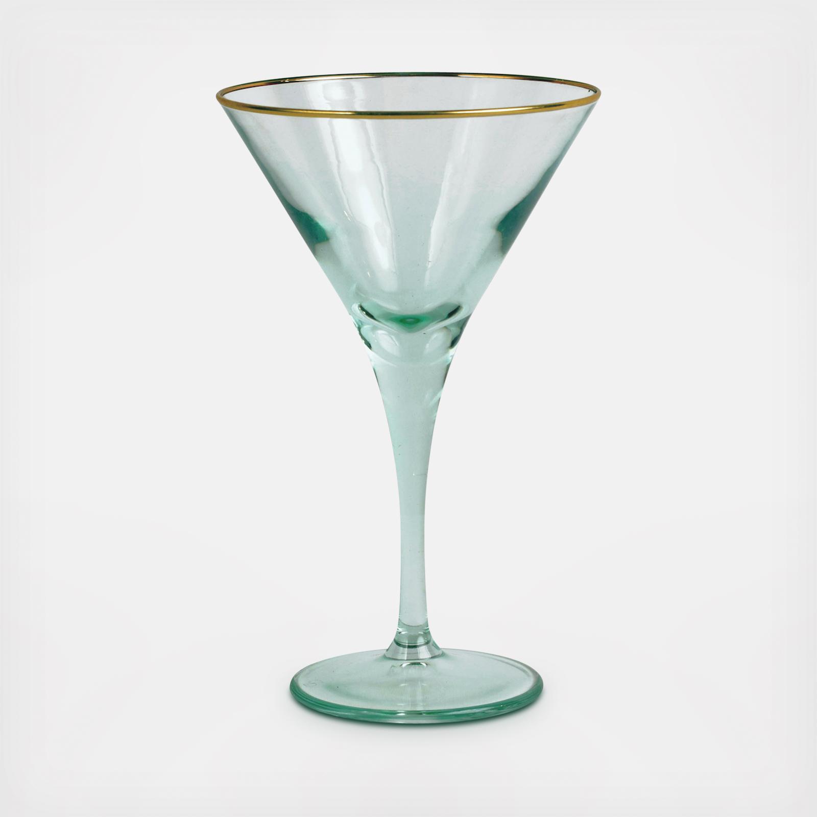 Add sparkle to any setting with a gilded gold rim and varied colored glass that refracts light on the Rainbow Martini Glass.