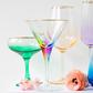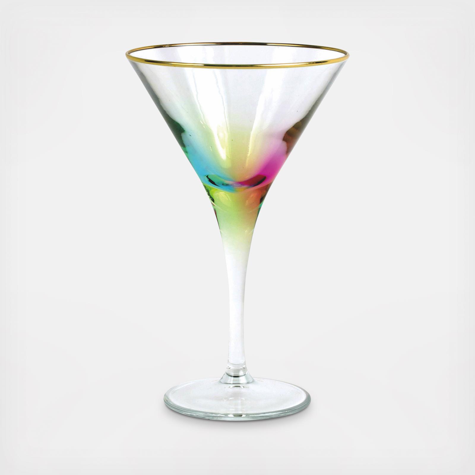Add sparkle to any setting with a gilded gold rim and varied colored glass that refracts light on the Rainbow Martini Glass.