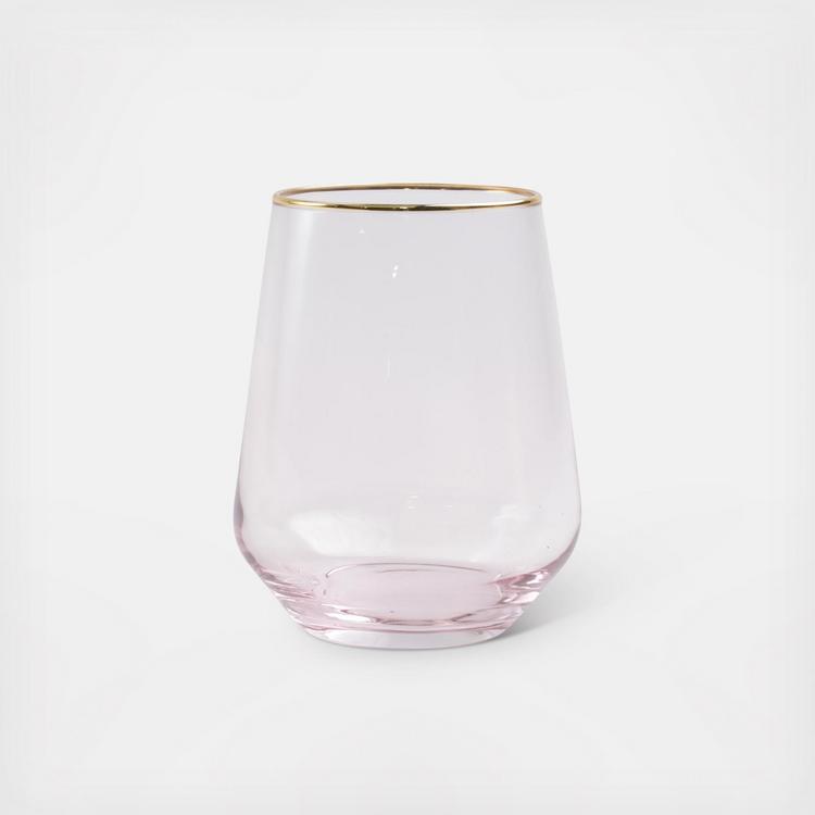 Add sparkle to any setting with a gilded gold rim and varied colored glass that refracts light on the Rainbow Stemless Wine Glass.