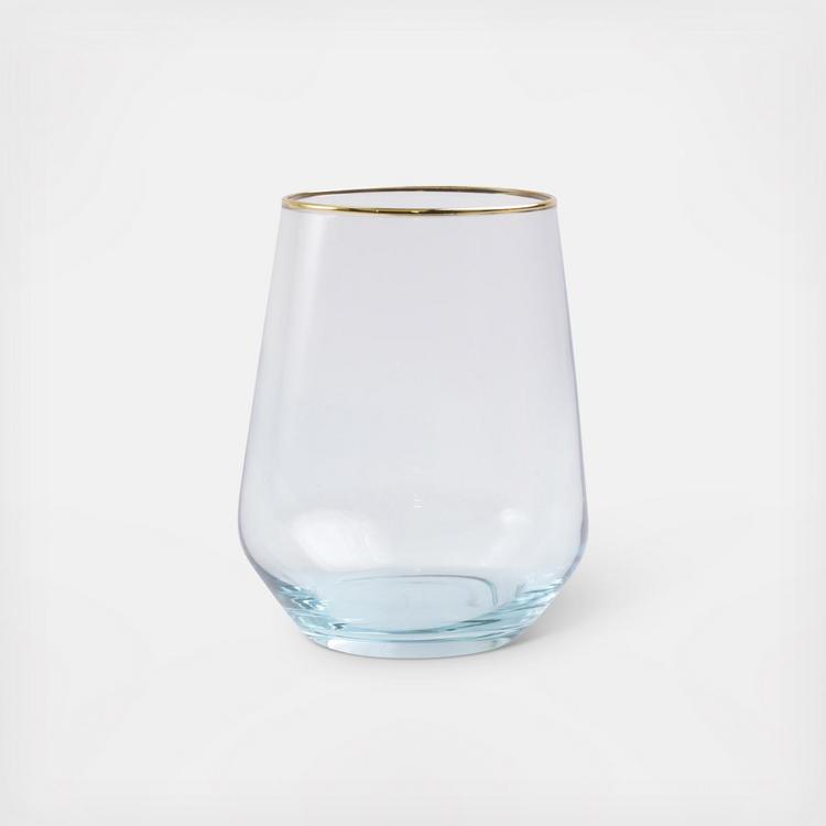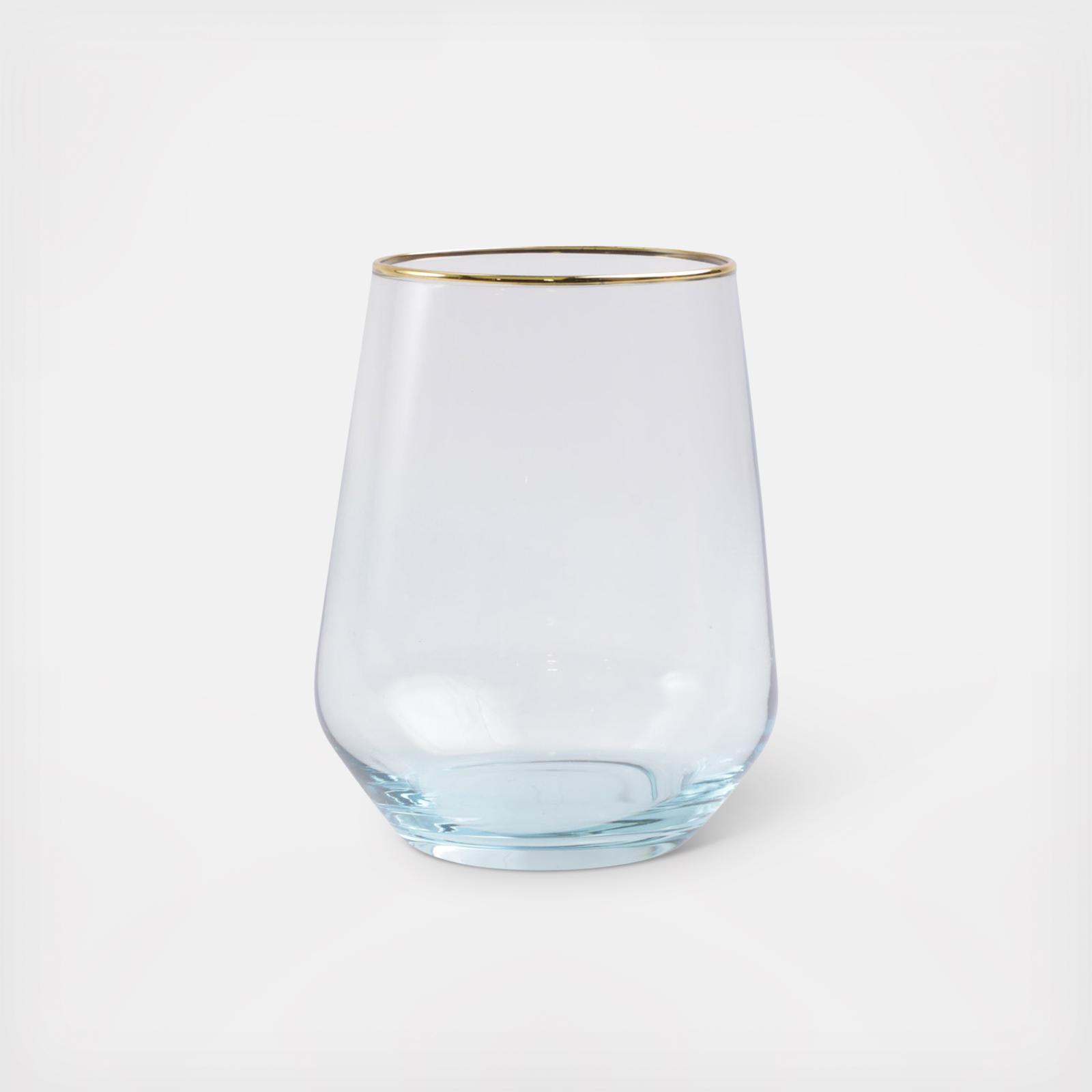 Add sparkle to any setting with a gilded gold rim and varied colored glass that refracts light on the Rainbow Stemless Wine Glass.