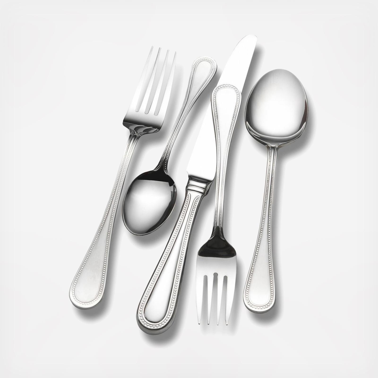 Wallace Continental Bead flatware pattern creates a distinctive look on your tabletop. Expertly crafted from superior quality 18/10 stainless steel, the handles feature a subtle, bead design trim. Service for 12.