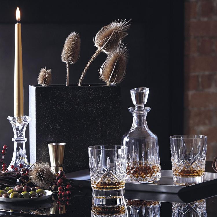 Featuring the best-selling Lismore crystal pattern, famous for its signature diamond and wedge cuts, the Lismore Gift Bar Collection is inspired by the rich heritage of Ireland with pieces designed to be used and enjoyed. What better way to complement your favorite whiskey than with the Lismore Small Decanter. With unrivalled sparkle and a distinctive slant cut on its crystal stopper, this decanter is perfect for whiskeys of all varieties. Stylishly presented in a new elevated grey gift box embossed on the border with the beloved Lismore pattern in black foil. This item makes a perfect gift for any occasion.