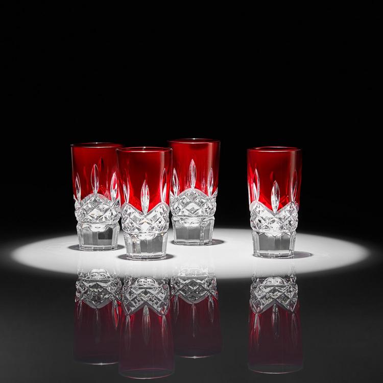 Lismore Red takes the inimitable clarity of our crafted crystal and infuses it with a bold, vivid red colouring. The result is an exquisite collection with a foot comfortably in two camps: classic Lismore cuts for the lover of tradition and that vibrant red for a chic modern edge. Raise a glass with special people with this set of stunning shot glasses. Featuring the iconic Lismore cut, inspired by Gothic architecture, a modern accent is provided by the coloured red crystal. Packaged in a signature Waterford gift box.