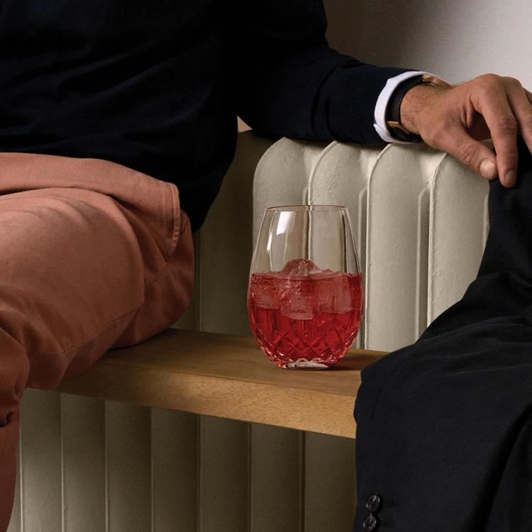 Waterford Lismore Nouveau combines the brilliance and clarity of Lismore with a cool, contemporary practicality. A bold new way to serve full-bodied red wine, the Lismore Nouveau Stemless Deep Red Wine glass retains the oversized bowl and diamond and wedge accents of a classic Lismore wine glass, while incorporating a trendy and practical stemless design. The result is a stylish glass that stands apart as a stunning example of contemporary modern drinkware at its best.