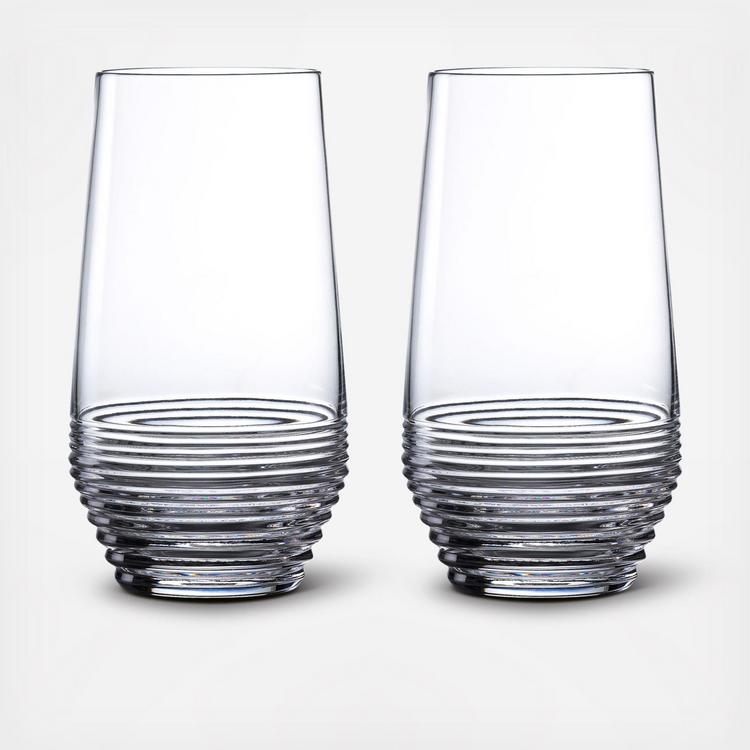 Bring contemporary style and Caribbean spirit to your home with the clarity and brilliance of pure crystal, the Mixology Circon Hiball 17 OZ Set/2 is designed to allow you to be a mixologist with all the new variations of rum available. Rum is enjoying a renaissance and these glasses are specifically designed for the enjoyment of new flavors and experiences with this authentic spirit. This generous Hiball Pair is encircled with a distinctive linear pattern, inspired by lines of sugar cane and concentric bands on rum barrels, perfectly proportioned for cocktail classics like Mojitos and Planter’s Rum Punch. Presented in a signature box with a decorative sleeve, this collection is perfect for enjoying a touch of the relaxed, island spirit of the Caribbean.
