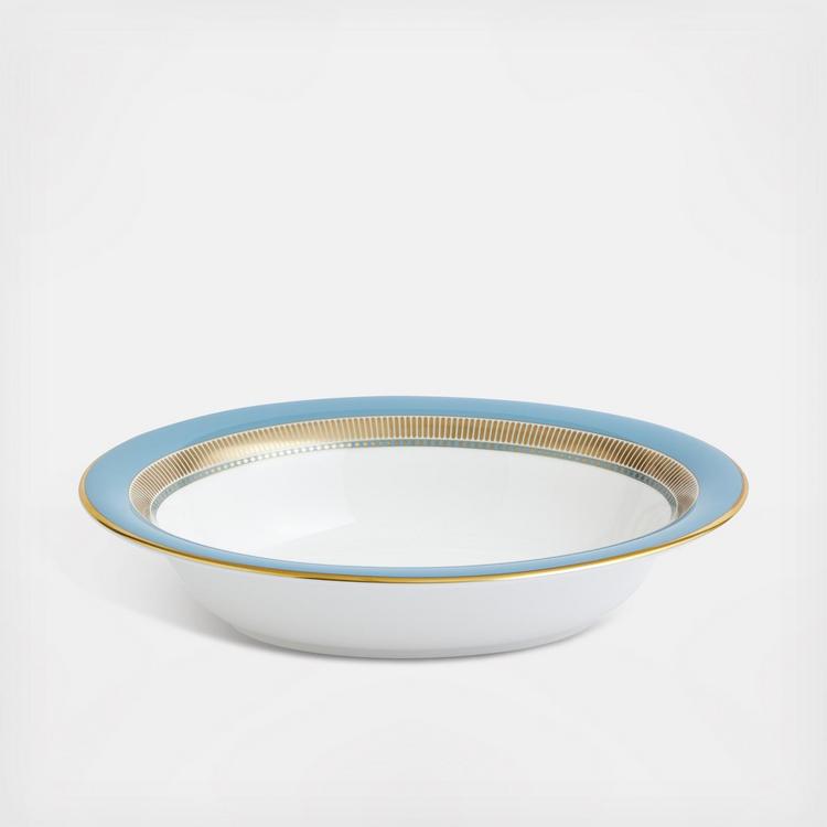 Serve your culinary creations on the Helia oval dish, inspired by Greek mythology. Radiant color banding accentuates the Jasperware duck-egg tones.