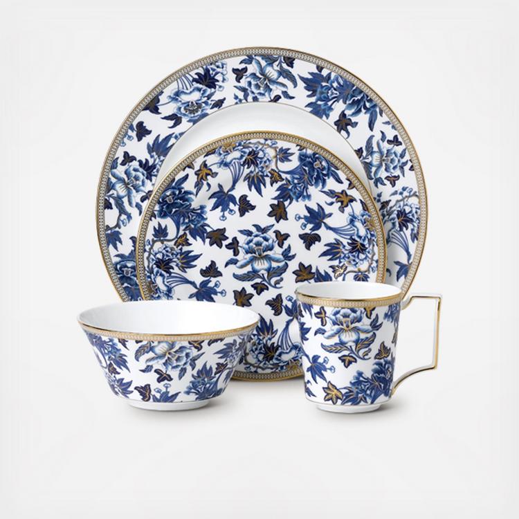Inspired by a Wedgwood archive pattern dating back to 1810, Hibiscus features a striking design of oriental blue hues and lavish botanicals skillfully hand-lined in 22 karat gold for an elegant, opulent finish. Reinterpreted for modern living, the Hibiscus 4-Piece Place Setting includes a Dinner Plate, Salad Plate, Soup/Cereal Bowl and Mug to serve as the perfect backdrop for any meal of the day.