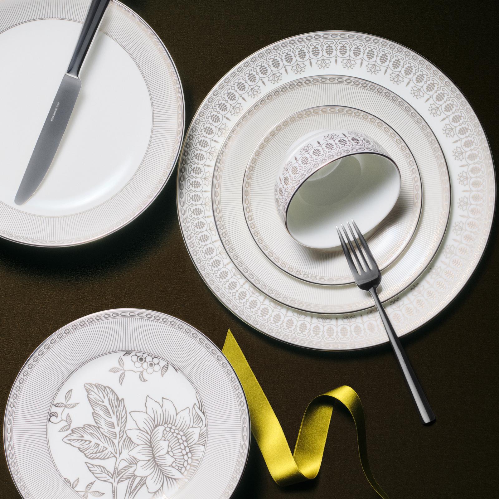 Elevate your dining experience with the Silver Tonquin Plate. This luxurious piece, made from luxury fine bone bone china, showcases delicate platinum detailing, making it an ideal choice for any occasion. Its timeless design and exquisite craftsmanship ensure a memorable dining experience.