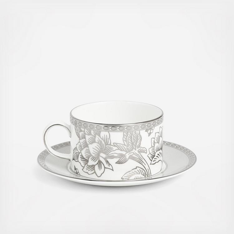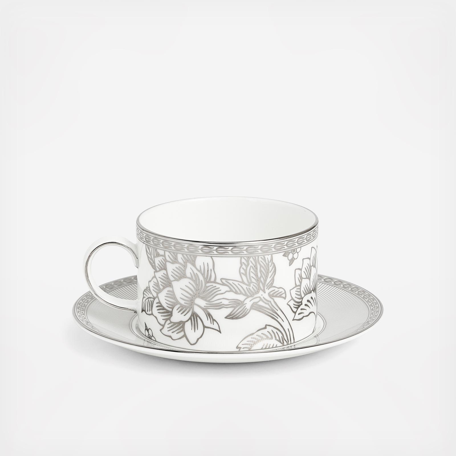 Elevate your tea experience with the Silver Tonquin Teacup and Saucer. Made from luxury bone china, this exquisite set showcases delicate platinum accents, making it an ideal choice for any occasion. Its timeless design and exquisite craftsmanship ensure a memorable experience.