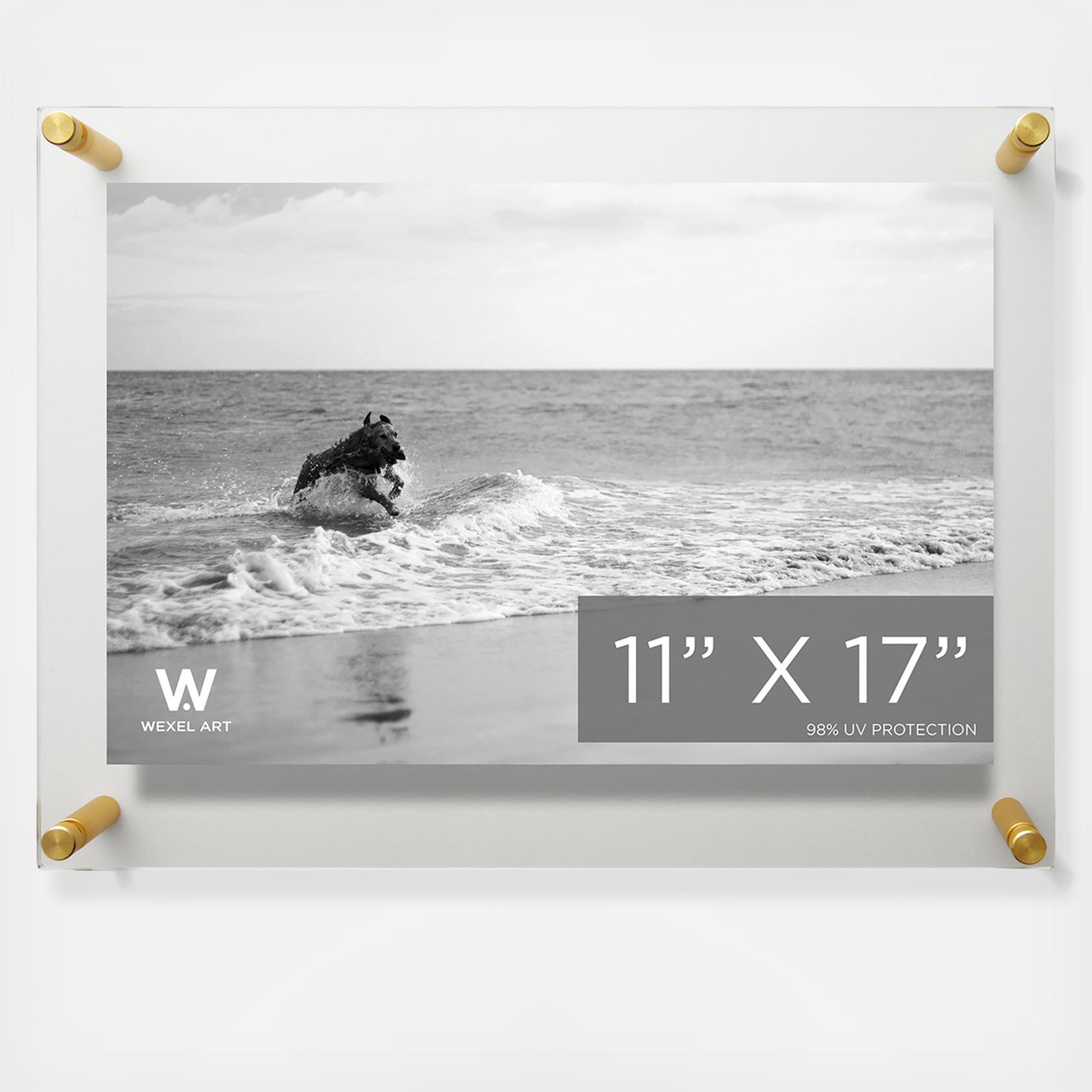 Float your artwork and posters off the wall while fully enclosing your art in between two panels of acrylic. Wexel's acrylic is mar-resistant and flame polished giving your frame the perfect finishing touch. When you want to change out your display, just unscrew the caps on the hardware and lift off the acrylic.