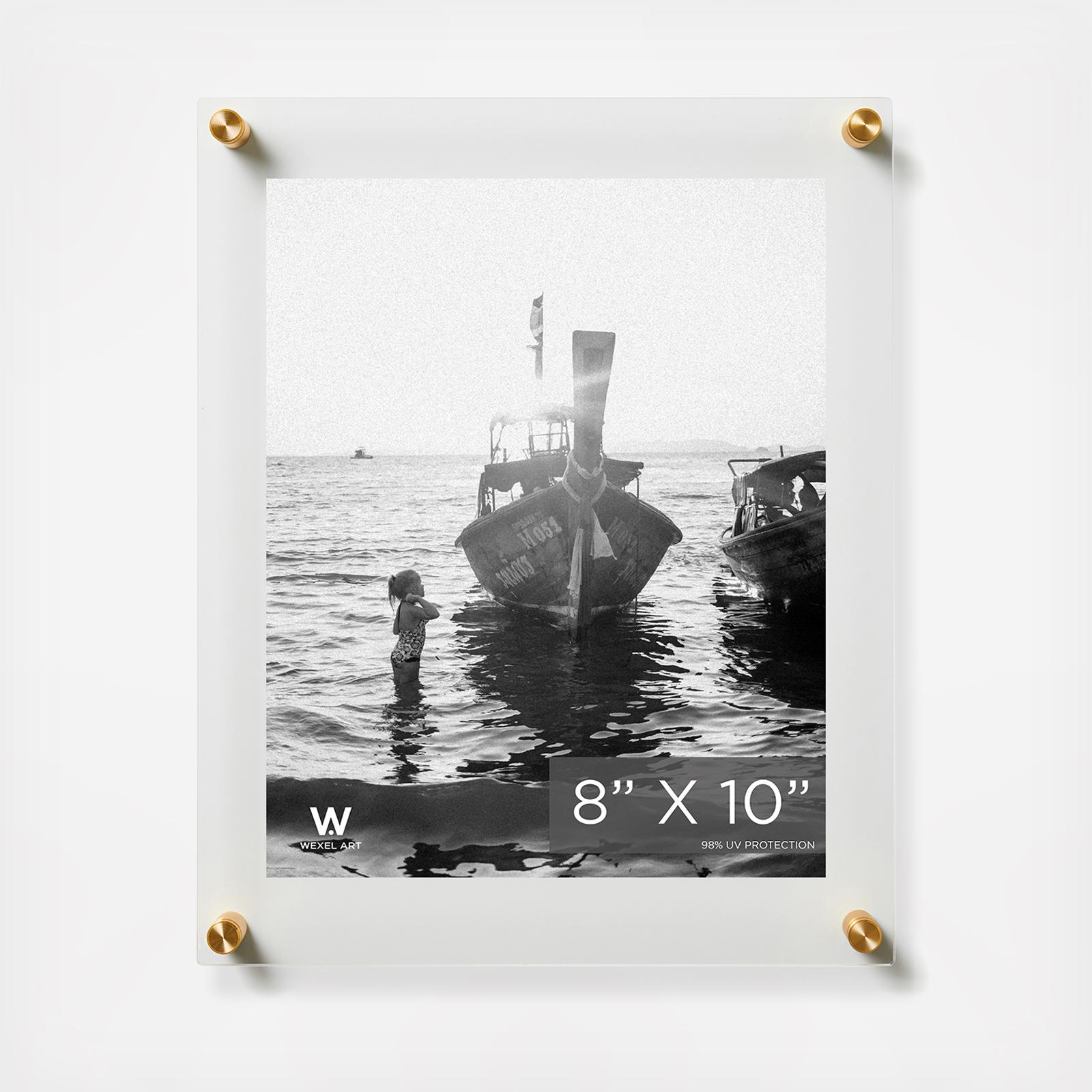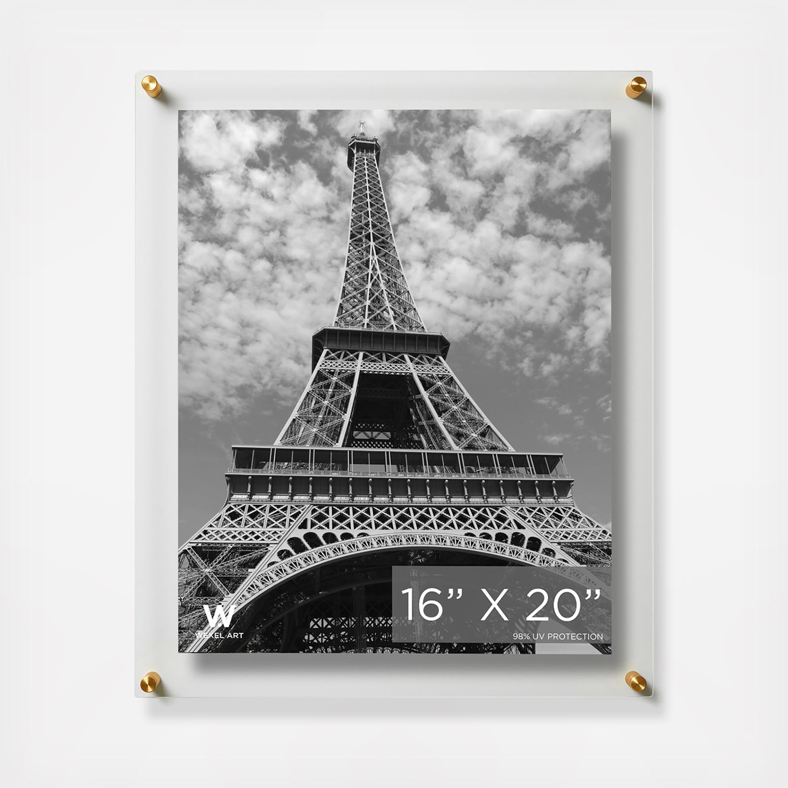 Float your artwork and posters off the wall while fully enclosing your art in between two panels of acrylic. Wexel's acrylic is mar-resistant and flame polished giving your frame the perfect finishing touch. When you want to change out your display, just unscrew the caps on the hardware and lift off the acrylic.
