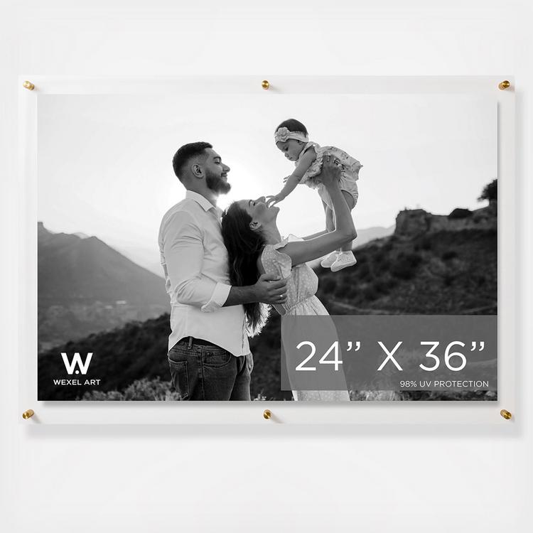 Float your artwork and posters off the wall while fully enclosing your art in between two panels of acrylic. Wexel's acrylic is mar-resistant and flame polished giving your frame the perfect finishing touch. When you want to change out your display, just unscrew the caps on the hardware and lift off the acrylic.