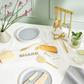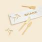 Add some good-humored glam to get-togethers with this stylish marble serving board. Combining creamy white marble with gold-plated stainless steel letters, this makes a stellar gift or a well-deserved treat to pamper yourself. Elevate your charcuterie game with the fabulous 5-piece set of cheese markers. Whether you’re serving sharp, creamy, stinky, hard, or soft cheese, we have you covered. Made from sturdy iron and coated in elegant gold, your guests will know you went the extra mile to make the evening special when using this set. Cut, slice, spread, and serve your favorite cheeses in the most of elegant of fashion with this set of 3 gold-plated stainless steel knives. Enjoy an evening of wine and cheese with family or friends secure in the knowledge that these graceful tools are up to the task at hand. Hand wash only.