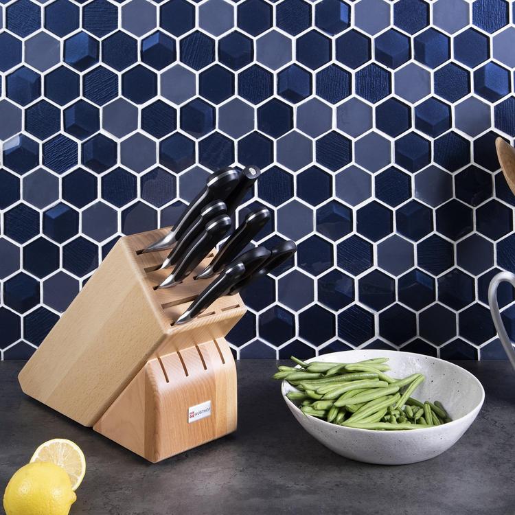 Tired of using the same knife for everything when you're cooking? It's time to take your kitchen, and culinary skills, to the next level. The Classic 7-Piece Knife Block Set is the perfect set for the home chef, with a blade for every task. The blades are forged from high-carbon stainless steel, and the handles were designed in consultation with professional chefs to make the knives as balanced and functional as possible. The attractive wooden storage block allows the knives, shears, and honing steel to remain on the counter within easy reach.