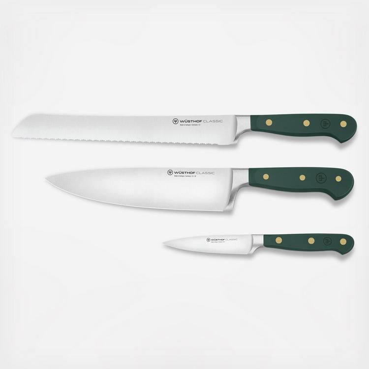 The perfect starter set for home cooks and professional chefs. The all-rounder in the kitchen: the most important piece of basic equipment for every home and professional chef, the Chef's Knife is suitable for most tasks in the kitchen and makes food prep a pleasure. The strong blade allows for effortless slicing of hard and soft bread without squeezing it. The most versatile of all parers: for mincing shallots, onions, and herbs as well as cleaning and cutting vegetables.