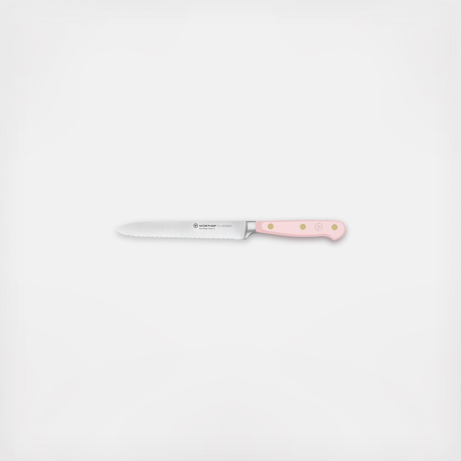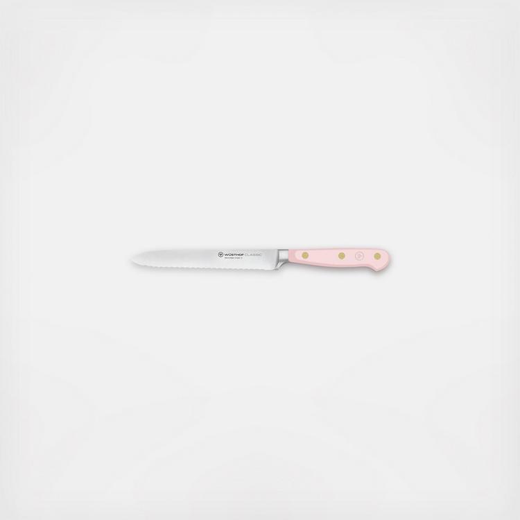 The perfect companion for preparing your packed lunch or at brunch, thanks to its fine serrated edge, this utility knife not only cuts cleanly through rolls without tearing, but it is also suitable for vegetables (such as firm tomatoes), fruit, or dry sausage. This makes it an integral part of sandwich preparation and of the brunch table setting, ideally found alongside the Cheese Knife.