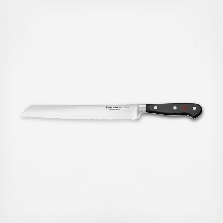 WUSTHOF's precise, double-serrated edge makes a clear difference with this bread knife: in contrast with a single-serrated edge, this knife has serrations within the serrations, meaning that it remains sharp for longer, requires less pressure and is suitable for very precise, smooth cuts. Bread with a hard crust is not crushed when sliced with this double-serrated blade, while bread with a soft crust is also sliced cleanly, without any tearing of the delicate surface.