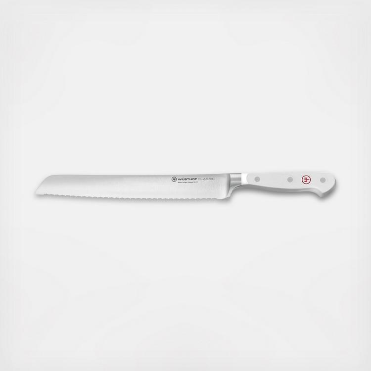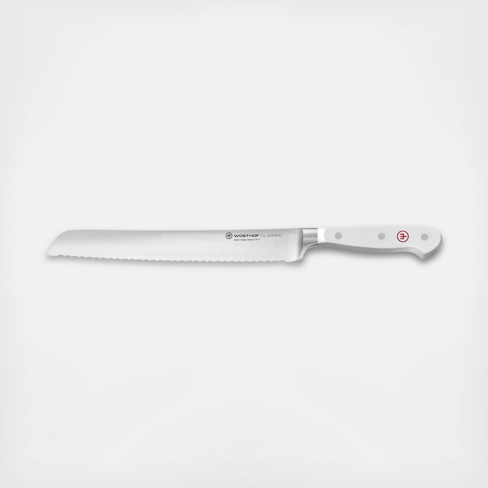 WUSTHOF's precise, double-serrated edge makes a clear difference with this bread knife: in contrast with a single-serrated edge, this knife has serrations within the serrations, meaning that it remains sharp for longer, requires less pressure and is suitable for very precise, smooth cuts. Bread with a hard crust is not crushed when sliced with this double-serrated blade, while bread with a soft crust is also sliced cleanly, without any tearing of the delicate surface.