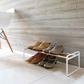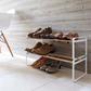 Here is a beautiful solution to the dreaded shoe pile. This simply designed shoe rack by Yamazaki is stackable to ensure maximum capacity. Stack them up, or use them separately, placing a couple in the closet and one by the door. Each rack is beautifully designed and holds up to three pairs of shoes so, between the two of you, you will need a few.