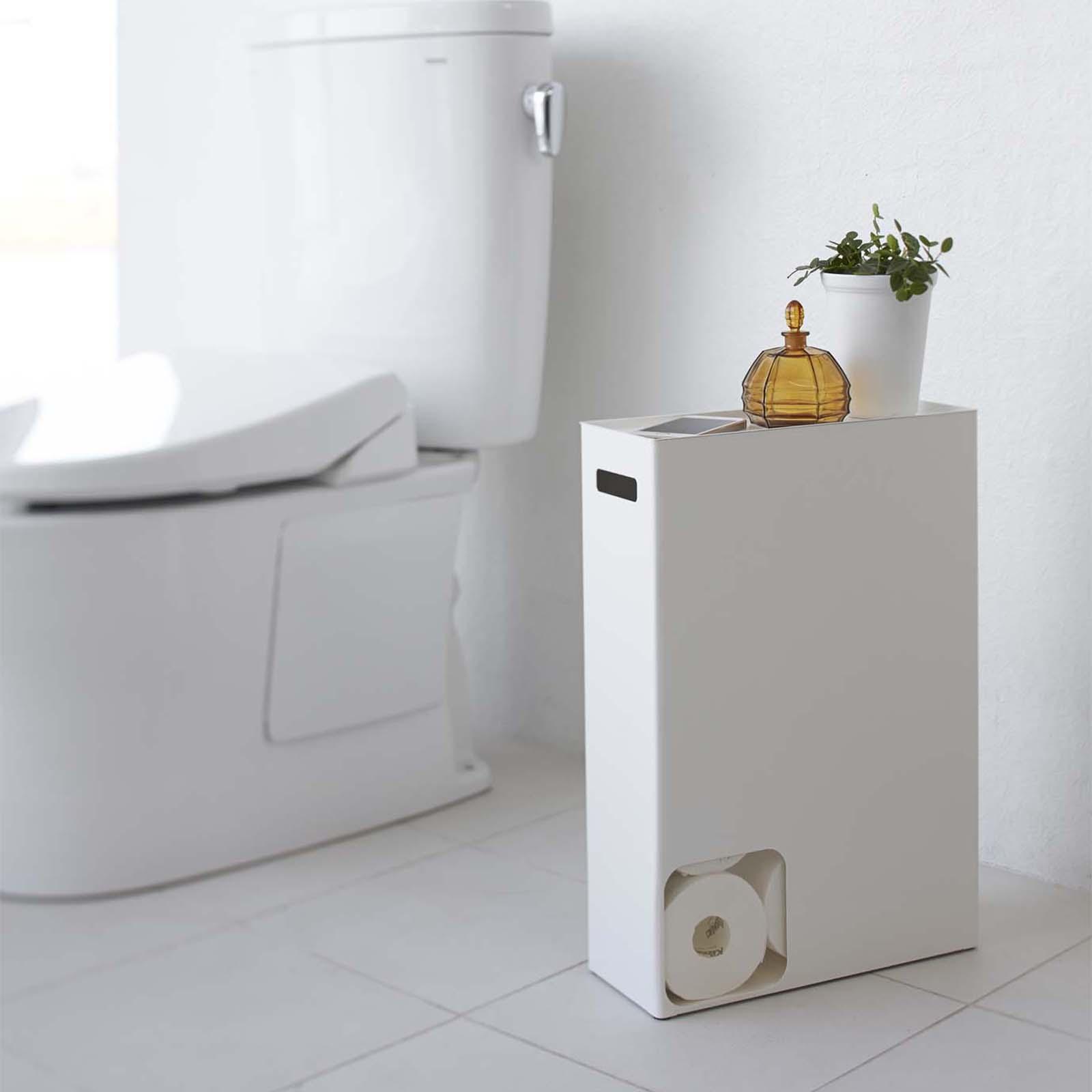 Need a place to store toilet paper? This stocker can store up to 12 rolls, and hide them from view.