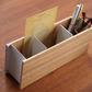 This simple Holder by Yamazaki can hold every miscellaneous item in a living room. Use it for various remote controls, pens, change and small electronics. It features a crisp, natural design and holds various items. Made of steel and wood, designed in Japan.