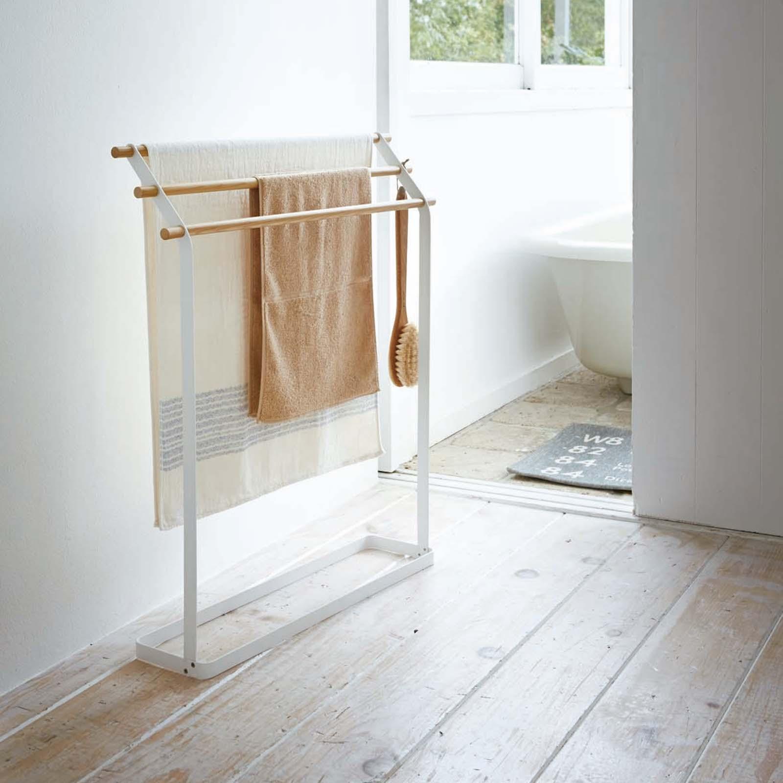 This beautiful bath towel hanger made of wood and steel by Yamazaki is not only a great organizer but also a pleasant accent in the bathroom. This saves the space and creates modern yet elegant atmosphere. Designed in Japan.