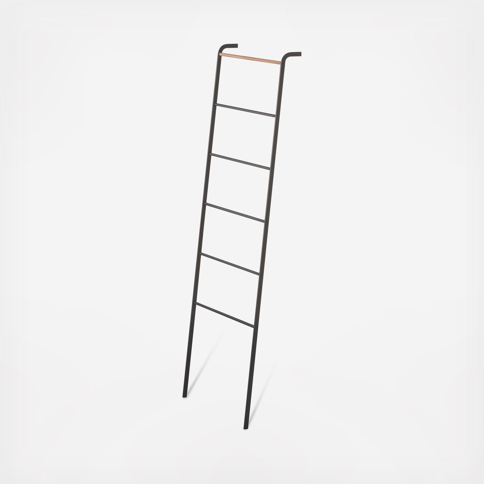 Fashioned like a ladder and made of steel, this hanger made by Yamazaki is perfect for items that are not usually hung. Scarves, pants, towels, and with the use of S-hooks, belts and small bags. Its slim, retro design makes it a stylish addition to any kind of room. It stands up easily against any wall and has a great capacity for holding many items. Made of steel, designed in Japan.