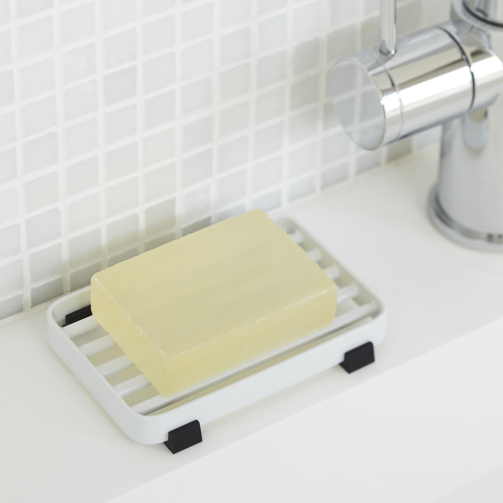 This simple Soap Tray by Yamazaki can be placed on a bath, or by a bathroom or kitchen sink to hold soap. It is self draining to keep soap dry, full and fresh, and is stylish and clever in design.