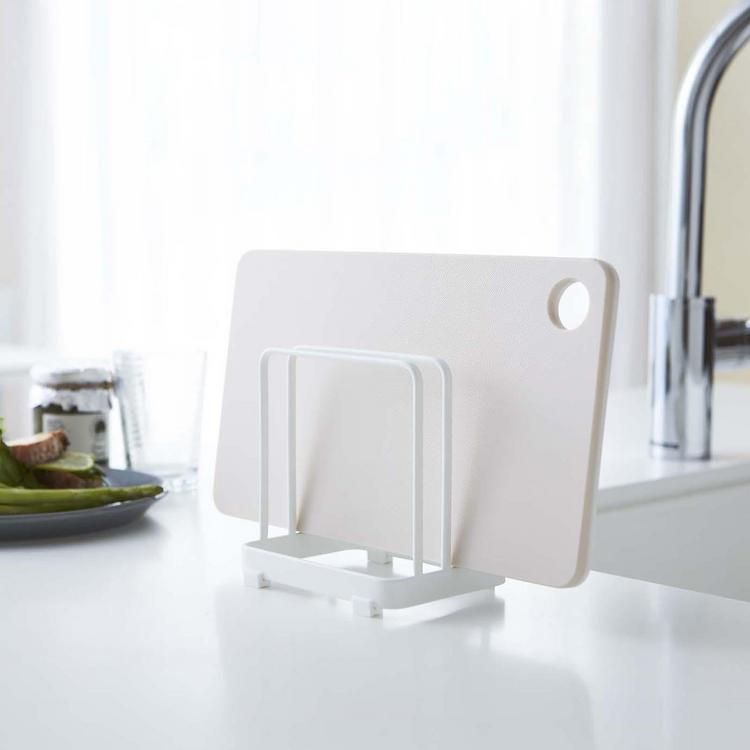 Tired of cutting boards toppling over. Keep your most-used cutting boards upright and secure with this modern stand. Perfect for cheese boards and small cutting boards.