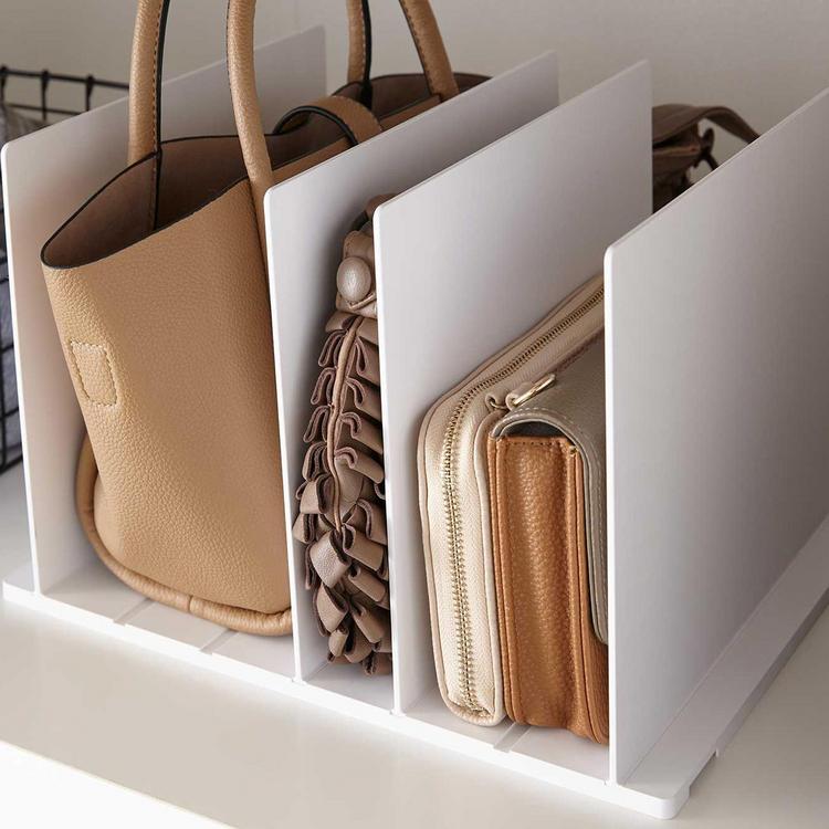 Are you ready to bag it up? Clutch, handbag, pocketbook—they come in every shape and color! There’s no one-size fits all solution with purse storage, but this customizable organizer takes away all the frustration. Lock the organizer into position according to the size of your bags to keep them all upright, perky, and pristine. If your bags are currently crushing one another in a stack, don’t worry, nip it in the bag.