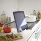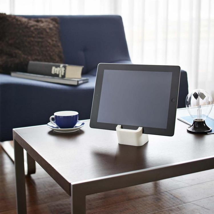 Power up your tablet. Light and portable, this tablet stand is a life savior for electronics! Use it to prop up your phone or tablet for reading recipes in the kitchen, watching TV during movie night, or for making a video call with the family. An indentation at the back of the stand allows your device to charge while in use, without crushing your cable!