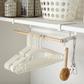 It's laundry day's heyday. In the never-ending quest for a more efficient laundry room, created a simple under-shelf solution for clothes hangers. Use the wooden bar to hook fabric sprays, spot sprays, cleaners and more.