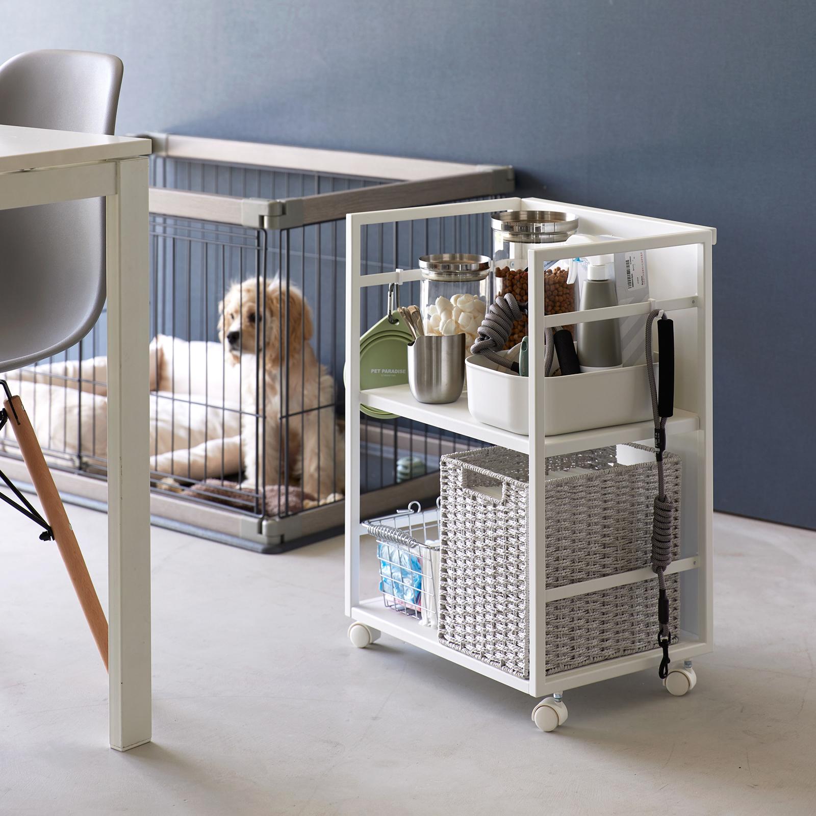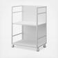 Tuck & roll away the visual clutter. Relieve packed cabinets and shelves with a little extra storage! With a clutter-concealing front panel and easy rolling wheels, this storage cart will quickly instill your space with ease and tidiness. Create your ideal setup with the height-adjustable top shelf, and stock up on pantry staples, pet care items, cleaning products—you name it. Roll out for easy access, and tuck away with the front panel facing out to minimize the visual clutter.