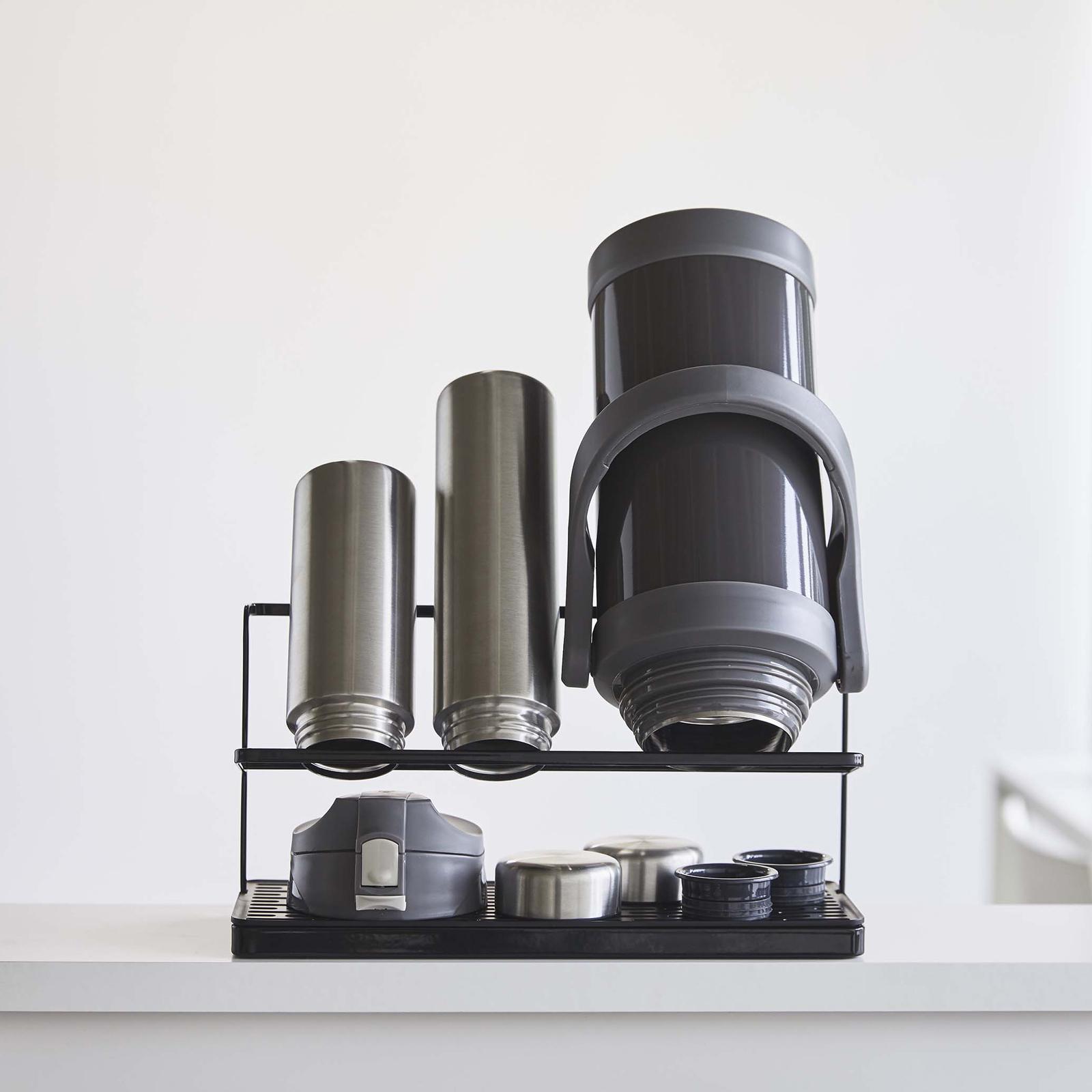 Put a smile on your mug! This mug and bottle drying stand is just the thing your sink has been waiting for. If your bottles are rolling around your dish rack, or worse tipping it over, consider a new drying solution. Dry your bottles upside down on the upper rack and store the lids below. The bottom tray is removable to shake out those drips and drops.
