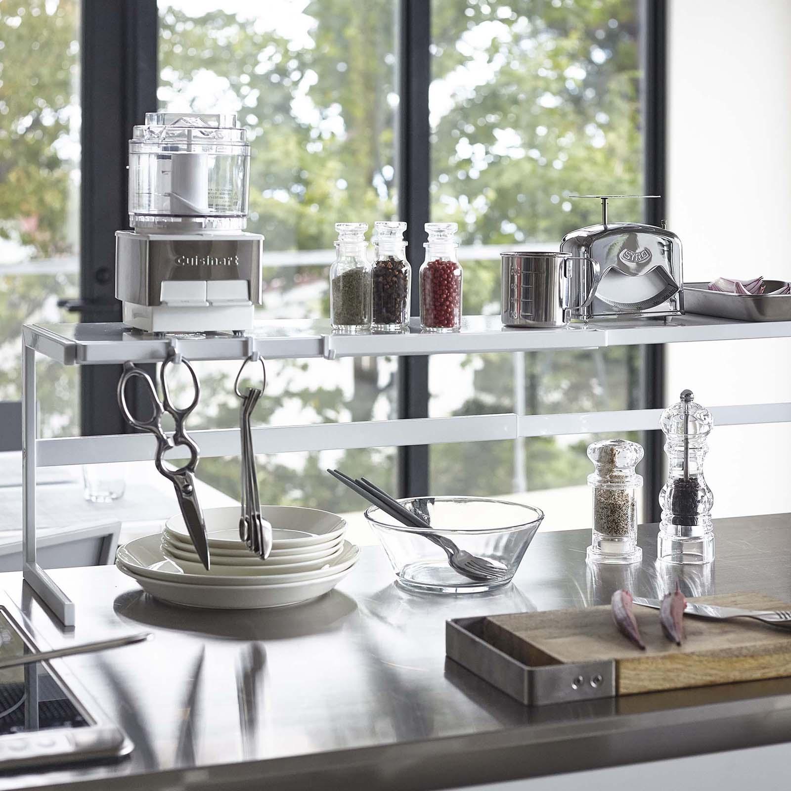 Ever need some extra space around your sink or stove top? This minimalist, expandable rack is the perfect solutions for all of your every day kitchen essentials. Expands from 22.25 to 36.25 inches to fit any kitchen environment.