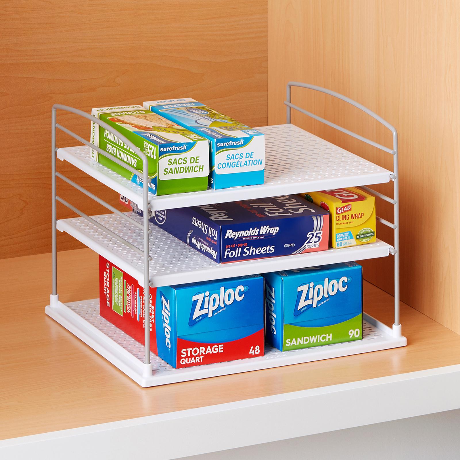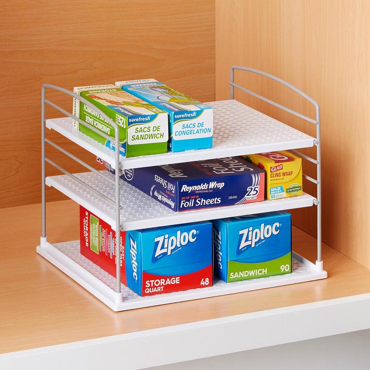 Upspace Box Organizer puts a stop to box pile-ups. Shelves adjust to maximize vertical cabinet space and keep things organized for a seamless find. When boxes slide in and out, you will be feeling the flow.