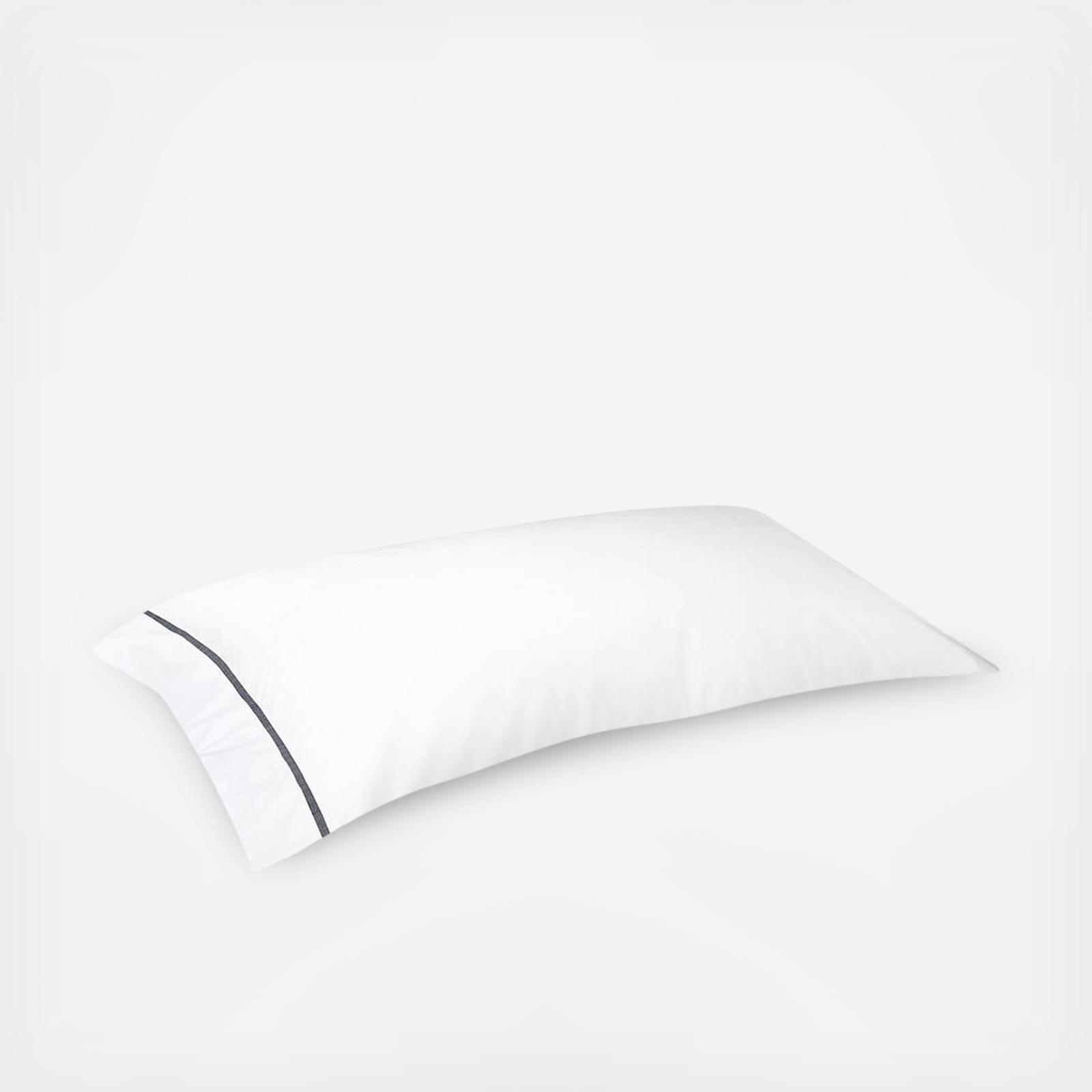 Athena bedding blends old fashioned elegance with new fashioned style. It is the interplay of a white background against the graphic perfection of intersecting stripes in many colors. Classic white long-staple combed cotton in 500-thread count percale features bourdon-stitched borders that extend vertically and horizontally for a modern, edge-of-the horizon look. Pillowcases sold in singles.
