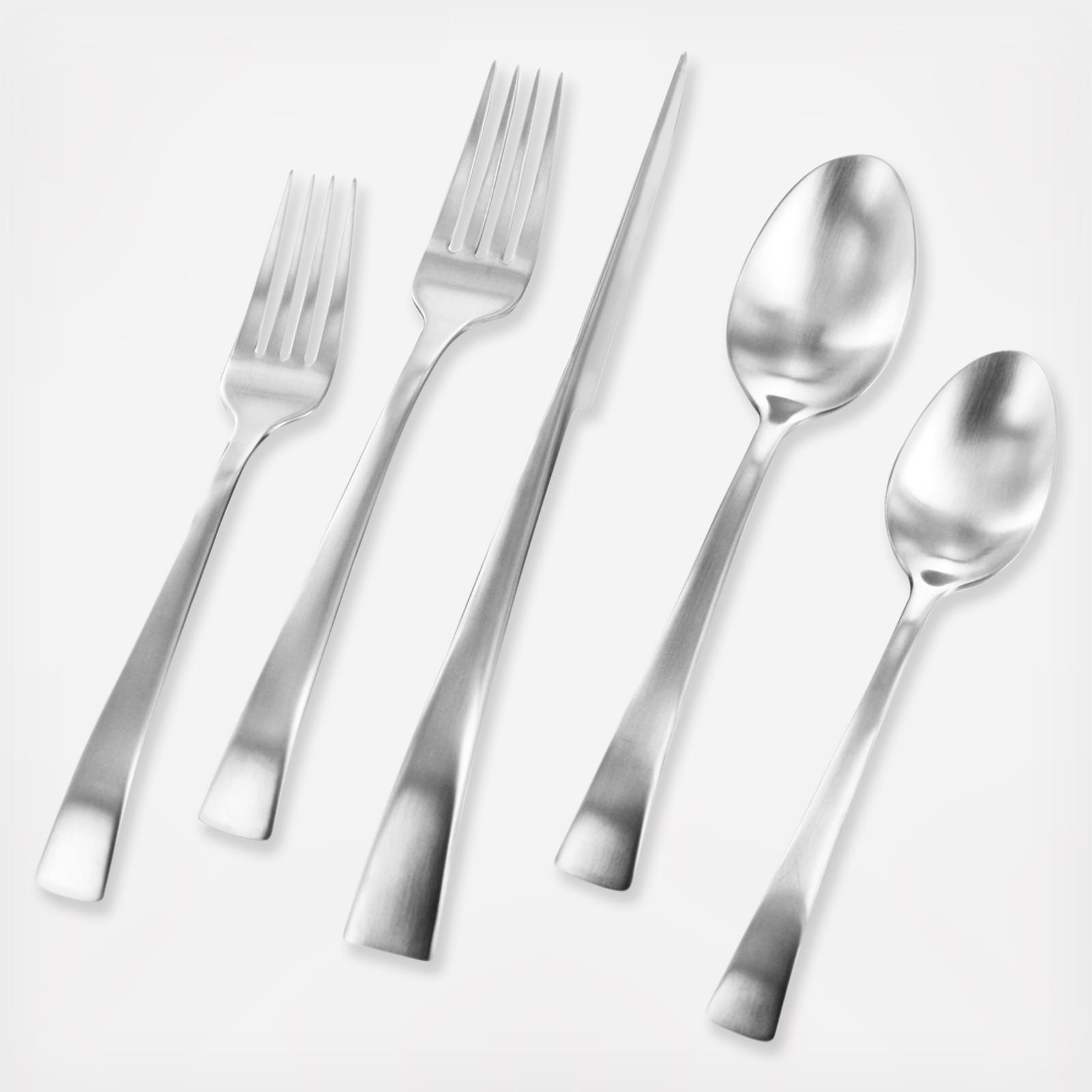 Form and function marry beautifully with this contemporary 18/10 stainless steel flatware set. Enjoy the balanced weight and feel of the satin-finished flatware and wait for the inevitable compliments from your guests.