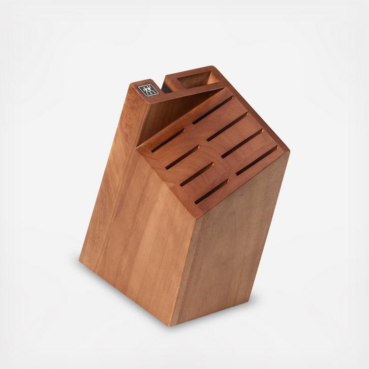 The Zwilling J.A. Henckels 10-Slot Pro Block features a slanted design for easy, unobstructed access to knife handles. It looks great on any countertop, and keeps an assortment of knives secure, organized and at the ready for use. The slots accommodate eight knives, one sharpening steel and a pair of kitchen shears. The block comes with non-slip rubberized feet to keep it in place and protect counter space.