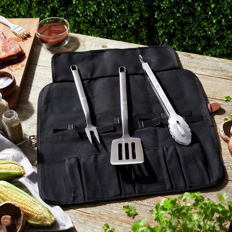 Quality Tools Add Up to Great Grilling At Zwilling, we’ve been perfecting the indoor kitchen for almost 300 years. Now, we’re bringing our expert engineering outside, with a suite of tools and accessories designed to elevate your grill game. From precision prepping and confident cooking to sublime serving, our BBQ+ line will enhance your grilling expertise every step of the way. Each element in this assortment is thoughtfully designed with details specifically suited to outdoor cooking.