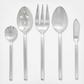 Opus features a contemporary European style that is a perfect compliment to any table setting. This satin-finished flatware features a subtle curve at the end of each handle that communicates understated elegance. This set features 8 x 5-piece place settings plus 5 key serving pieces. The flatware features carefully polished surfaces and edges which both look and feel good. The heavy gauge and substantial sizing result in perfect balance and the feeling of quality in the hand.